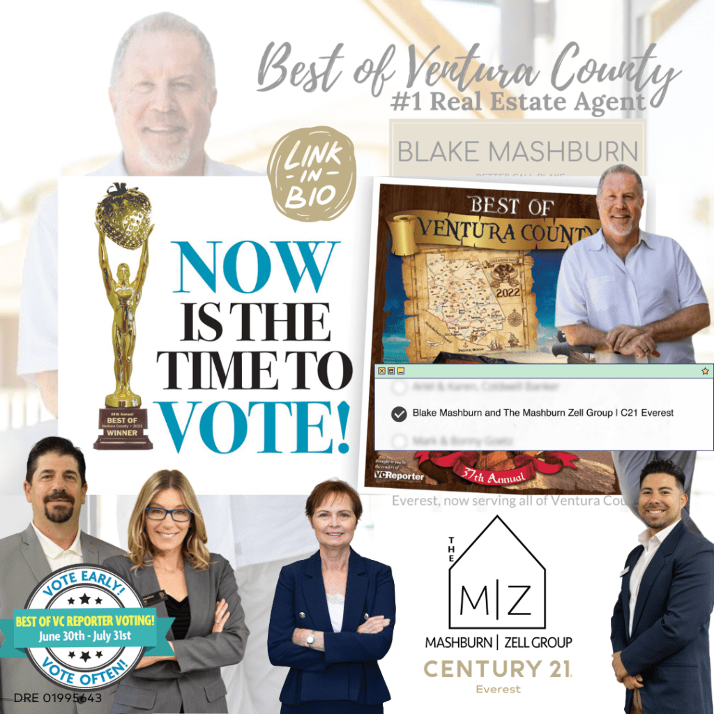 So, we encourage you to vote for Blake Mashburn and The Mashburn Zell Group of Century 21 Everest. Your support will not only honor our dedication and hard work but also allow us to continue serving you and the Ventura County community with experience, innovation, and results.
